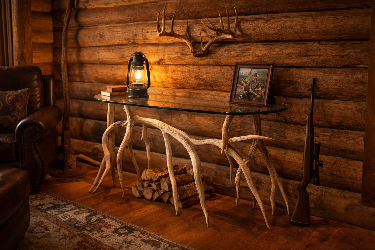 Glass Top Elk Antler Grand Entry Console