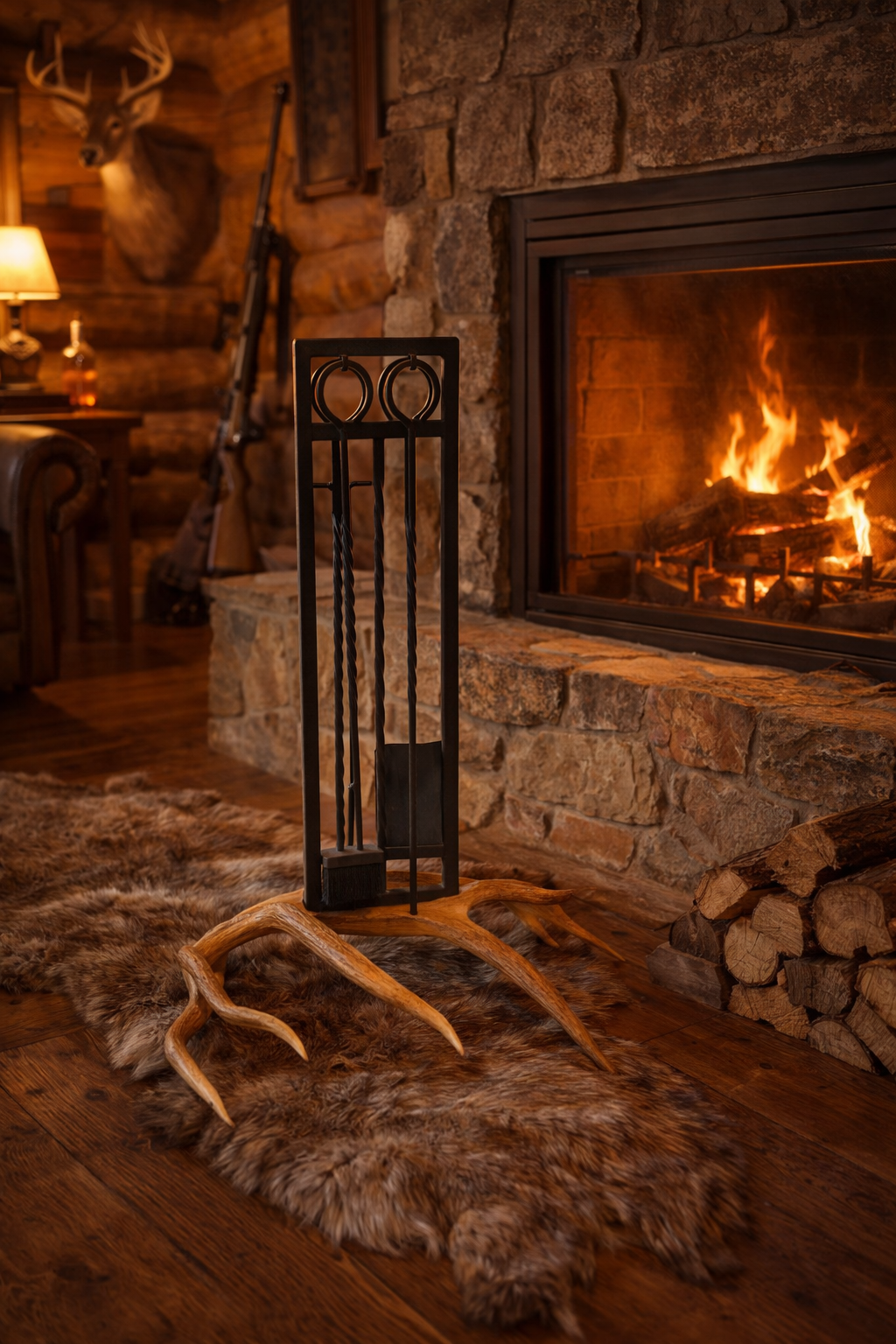 Handcrafted Elk Antler Fireplace Set
